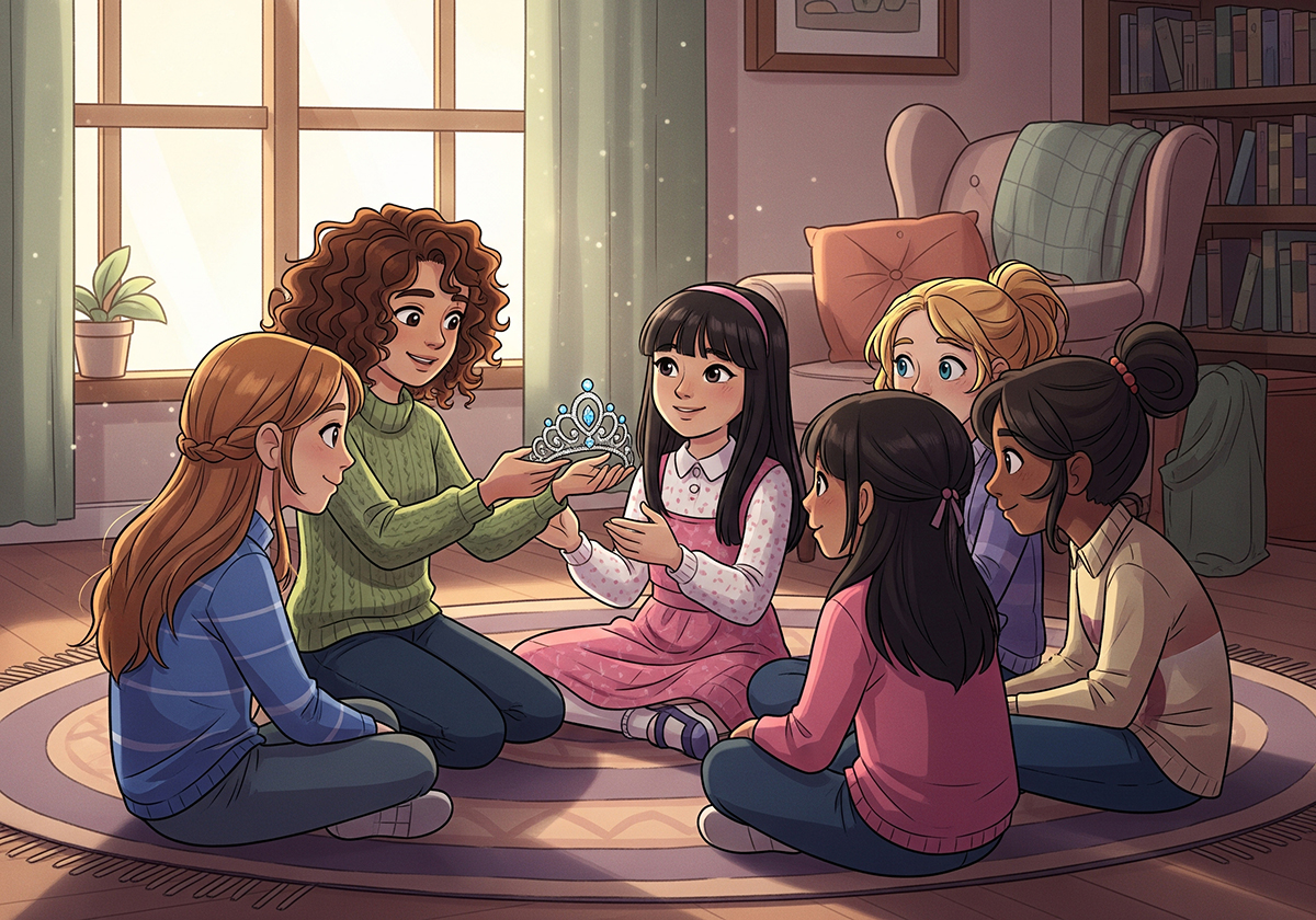 “Você pode enfrentar [nome do desafio] em Cristo que te fortalece.” - Ela então passa a coroa para a próxima, que compartilha seu desafio, e o ciclo continua até todas participarem.