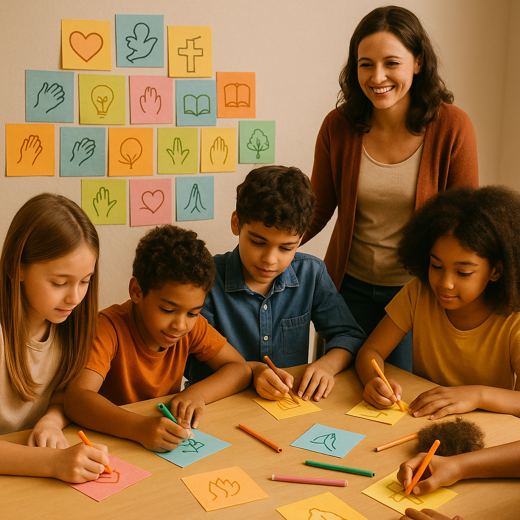 Peça que escrevam nele algo que gostariam de construir com Deus: mais amor na família, coragem para falar de Jesus, sabedoria para estudar, disposição para ajudar os outros, entre outros sonhos ou atitudes.